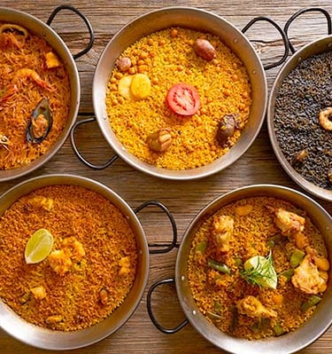 Auténtica paella española con mariscos frescos y arroz de calidad.